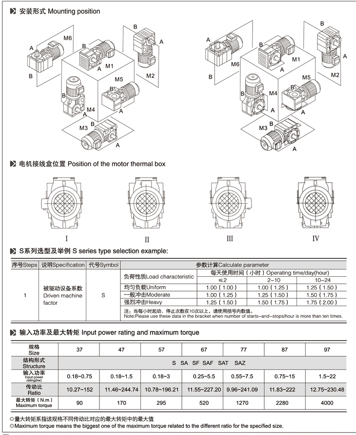 4、S系列斜齒輪蝸輪減速機(jī)傳動(dòng)精度高,特別適應(yīng)在有頻繁啟動(dòng)的場(chǎng)合工作,可連接各類減速器及配置各類型電機(jī)驅(qū)動(dòng),可安裝在90度傳動(dòng)操作位置。